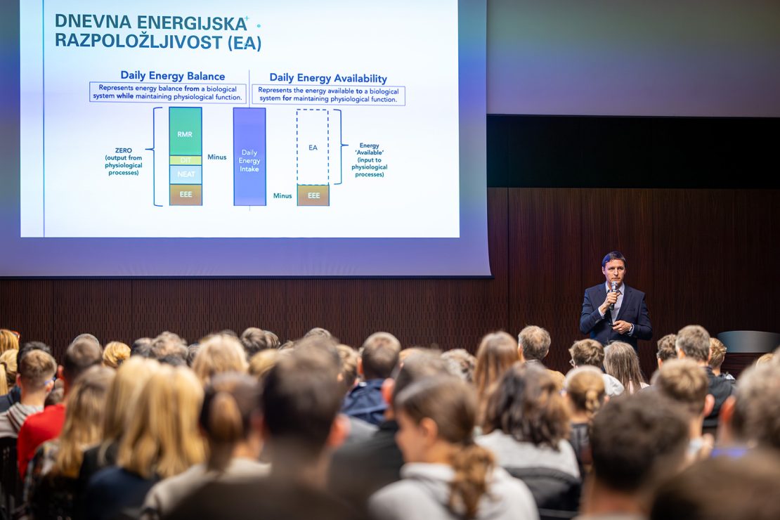 Predavatelj je opozoril, da se pomanjkanje energije pogosto kaže postopno: z utrujenostjo, slabšo regeneracijo, večjim tveganjem za poškodbe in padcem zmogljivosti.