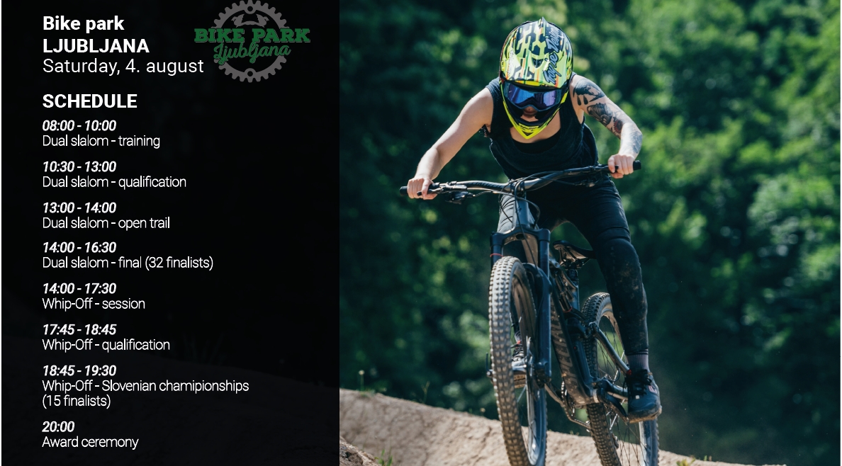 Dual slalom consists of two almost symmetrical lines. Two riders go down the trail at the same time, each one once on a different line. Combined times of both runs eliminate the slower rider.